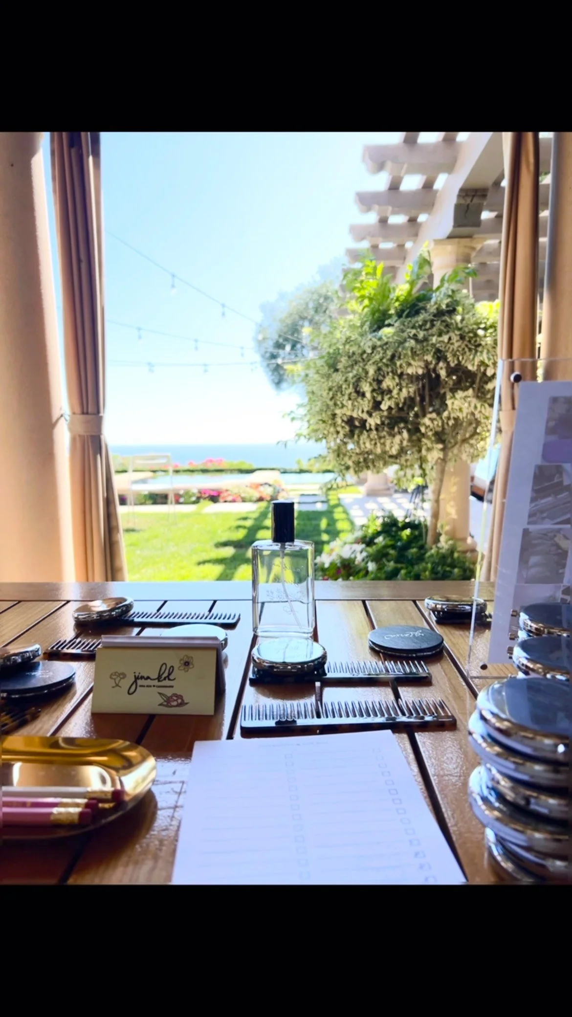 perfume bottles, fragrances, candles, compact mirrors, combs, lip gloss, other beauty products, wine bottles, liquor and spirits, flasks, drinkware including coupes, shot glasses, tumblers, pens, cake cutters/knives, lighters, water bottles, travel cases, luggage tags, leather card holders, sunglass cases, sunglasses, note cards, gift tags, locks, wood cutting boards, charcuterie boards, wooden utensils, tote bags, makeup pouches, pencil pouches, key chains, bag charms, charm bracelets, gift tags, note cards, envelopes, VIP notes, invitations, signage, wedding favors, holidays gifts, ornaments